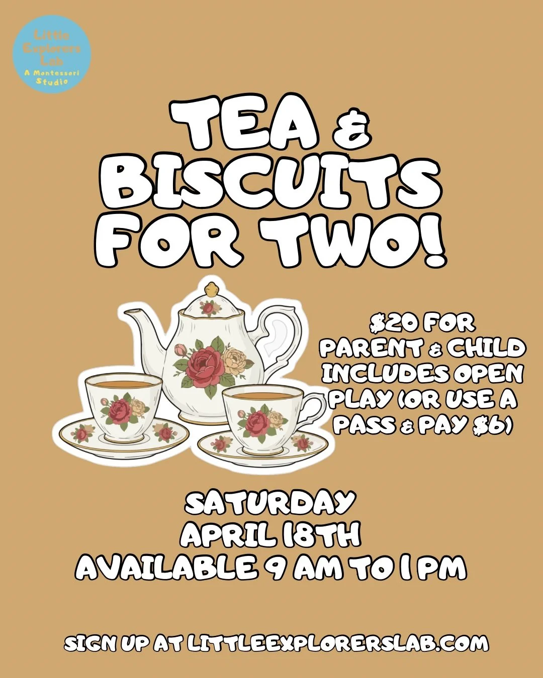 Join us for our Tea & Biscuits for Two experience at Little Explorers Lab—a cozy, connection-filled class designed for parent and child to slow down and enjoy time together.